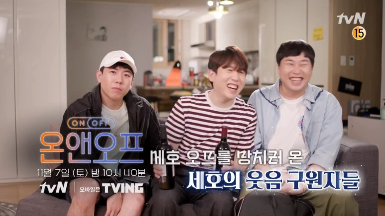 7일 방송되는 온앤오프에서는 이날 조세호의 십중팔구 멤버들과 함께하는 홈파티가 그려진다고 합니다. 십중팔구는 조세호를 필두로 양세찬, 이진호, 남창희, 이용진, 양세형 등이 소속되어 있는 개그맨 모임 이름이라고 합니다. 이날 남창희, 양세찬, 이진호를 자신의 집으로 초대했습니다.