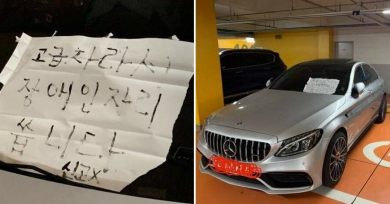 "내 차는 고급차(벤츠)니 장애인 구역 주차해도 신고 마라"