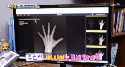 몸무게는 62등, 뼈 나이는 8세 10개월 정도 됐다.
