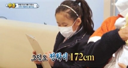 성장판 검사 결과 38주에 3.15kg으로 태어났던 주은의 만 나이는 7년 4개월이었고, 키는 126.7cm에 달했다. 100명중 78번째 정도로 꽤 큰 편이었다.