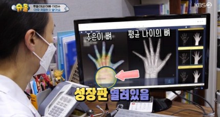 전문의는 "1년 6개월 정도 빠른 편이라 최종 키가 작을 수도 있다. 종합적으로 대입해 봤을 때 최종 예측 키는 161.6cm 정도 나왔다"고 전했다.