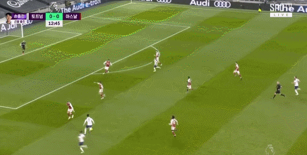 이날 손흥민은 전반 13분 해리 케인의 패스를 받아 아스날 진영 왼쪽을 파고 들어간 뒤 강력한 슈팅으로 원더골을 터트렸습니다.