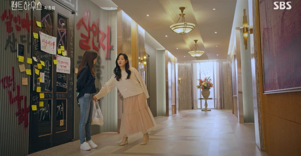 마지막장면이 오윤희가 씁쓸하게 피흘리며 쓰러져있는것과 천서진이 펜트하우스에 자신의 사진을 걸고