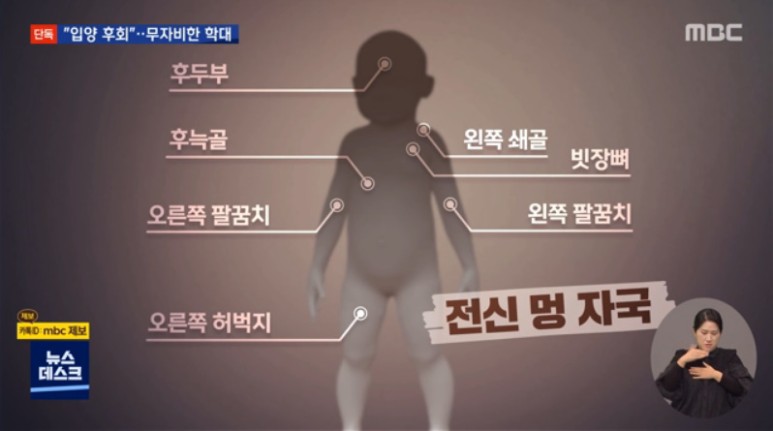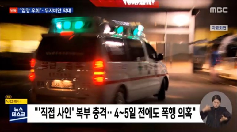 사망 당시엔 쇄골과 뒷머리, 갈비뼈, 허벅지 등에서 모두 부러진 흔적이 발견됐고 온 몸에 멍이 들어 성한 곳이 없을 정도였습니다. 직접 사인이 된 복부 충격 역시 숨지기 4~5일 전에도 비슷한 폭행이 있었던 걸로 의료진은 추정했습니다.