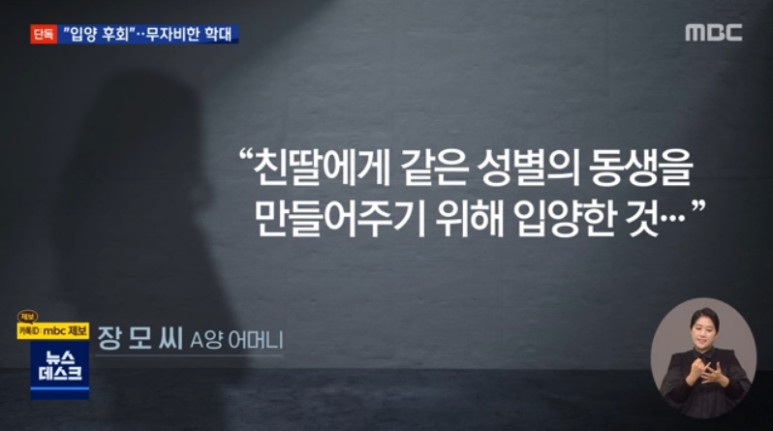 지난달 ebs의 입양 가족을 소개하는 프로그램에 출연한 장 씨가 입양 아이를 방임하고 확대한 정황이 포착됐습니다. 10일 mbc 보도에 따르면 장 씨는 3년 전 입양단체에서 일한적이 있었다고 합니다. 그때 지인들에게 "친딸에게 같은 성별의 동생을 만들어주고 싶다"며 입양을 결정했다고 밝혔습니다.